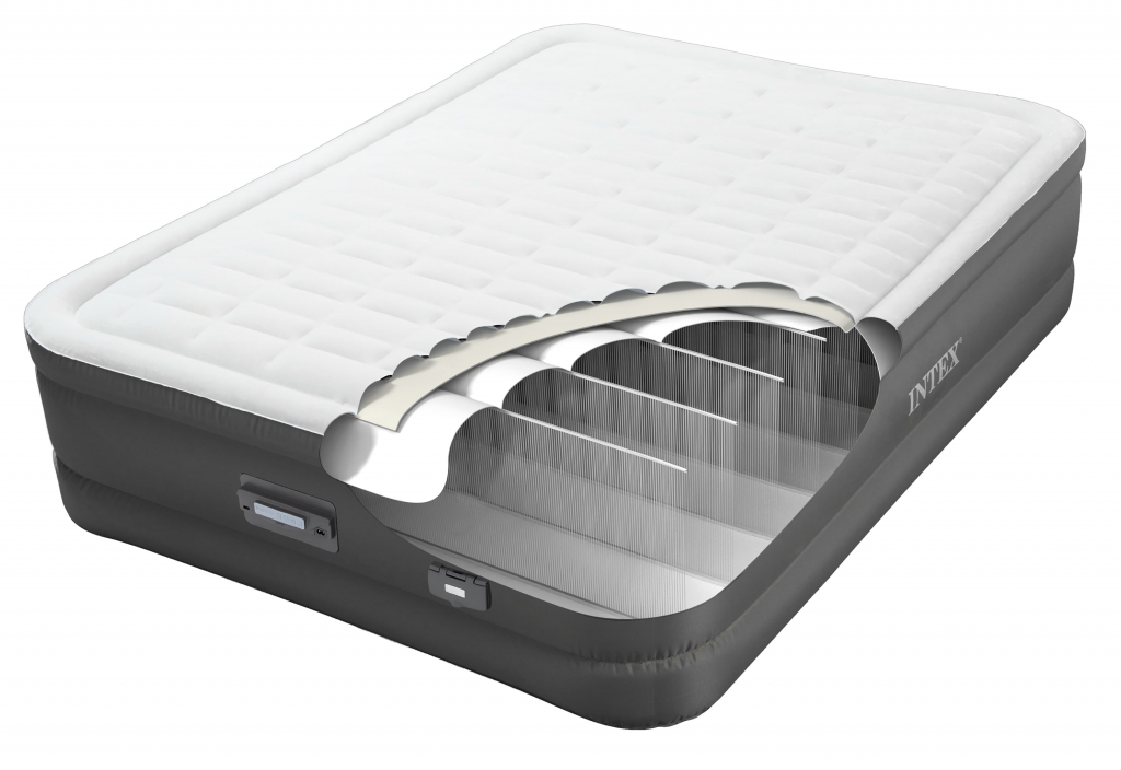 Надувная двуспальная кровать премиум класса серии PremAire Bed изготовлена по технологии Fiber-Tech. Внутренние перегородки сделаны из множества полиэфирных волокон, за счет чего кровать становится намного прочнее и легче. Поперечное расположение ребер жесткости придает кровати необходимую твердость и упругость.